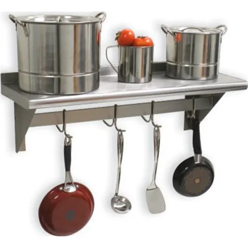 Advance Tabco PS-12-36 Wall-Mounted Shelf With Pot Rack Stainless Steel - 6 Hooks 36"W x 12"D