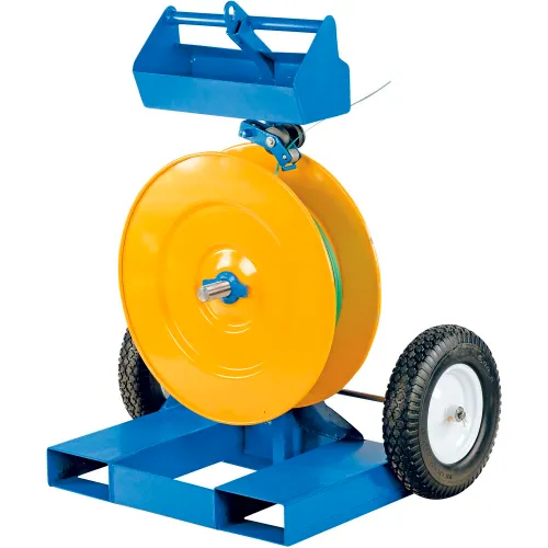 Strapping Cart w/ Fork Pockets, 26-7/16"L x 38"W x 48-15/16"H, Blue & Yellow