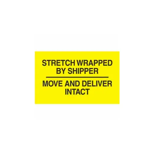Paper Labels w/ "Stretch Wrapped By" Print, 5"L x 3"W, Bright Yellow & Black, Roll of 500