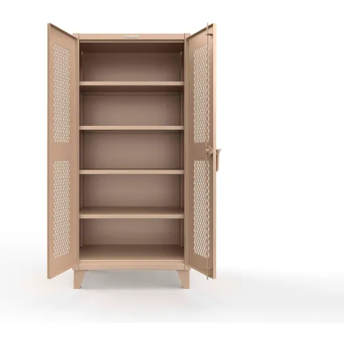 Strong Hold® Cabinet w/Ventilated Doors, SecuRam ScanLogic Smart Lock, 36"W x 24"D x 78"H,Beige