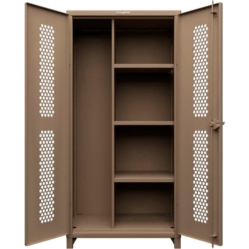 Strong Hold® HD Stationary Ventilated Cabinet, w/ 3 Shelves, 36"W x 24"D x 75"H, Beige