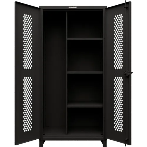 Strong Hold® HD Stationary Ventilated Cabinet, w/ 3 Shelves, 36"W x 24"D x 75"H, Black