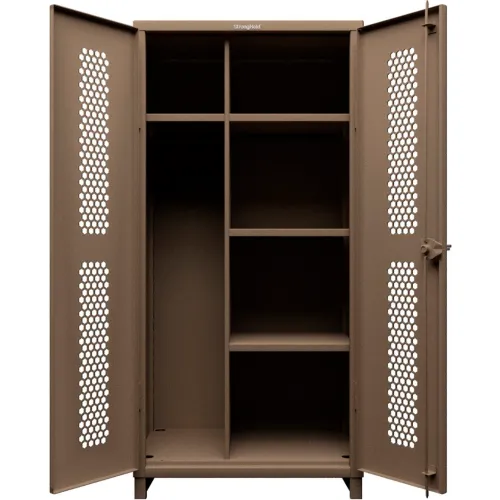 Strong Hold® HD Stationary Ventilated Cabinet, w/ 4 Shelves, 36"W x 24"D x 75"H, Beige