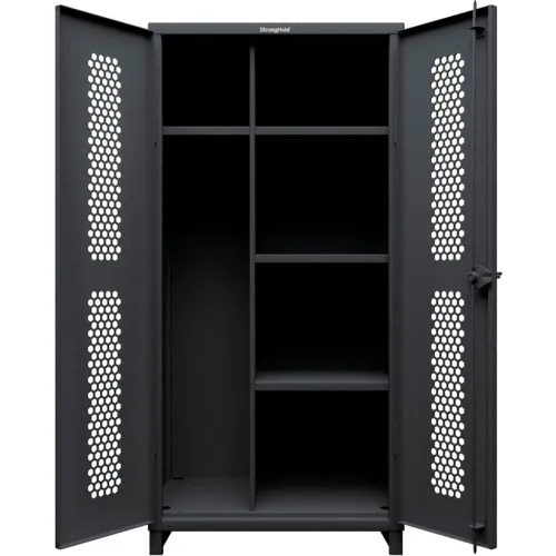 Strong Hold® HD Stationary Ventilated Cabinet, w/ 4 Shelves, 36"W x 24"D x 75"H, Dark Gray