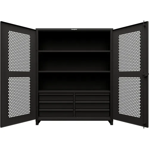 Strong Hold® HD Stationary Ventilated Cabinet w/3 Shelves, 6 Drawers, 60"Wx24"Dx75"H,Black