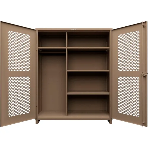 Strong Hold® HD Stationary Ventilated Cabinet w/4 Shelves, 60"W x 24"D x 75"H, Beige