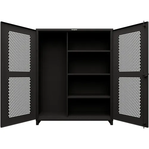 Strong Hold® HD Stationary Ventilated Cabinet w/5 Compartments, 60"W x 24"D x 75"H, Black