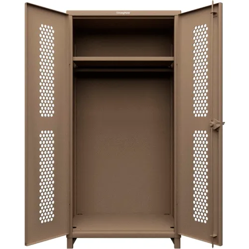 Strong Hold® HD Stationary Ventilated Cabinet, w/Hanger Rod, 1 Shelf, 36"W x 24"D x 78"H, Beige