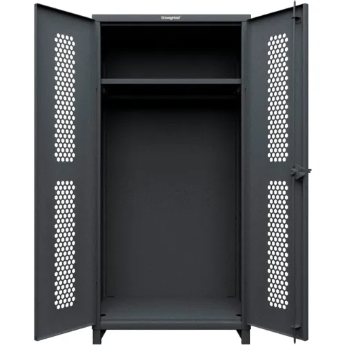 Strong Hold® HD Stationary Ventilated Cabinet, w/Hanger Rod, 1 Shelf, 36"Wx24"Dx78"H, Dark Gray
