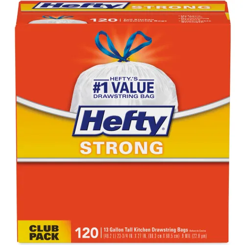 Hefty® Strong Tall Kitchen Drawstring Bags, 13 Gal, 0.9 mil, White, 90/Box, 3 Boxes/Case