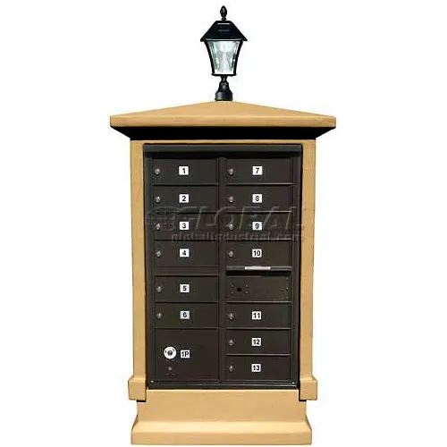 Stucco CBU Mailbox Center, SHORT Pedestal (Column Only) in Burnt Tuscan Color w/Bayview Solar Lamp