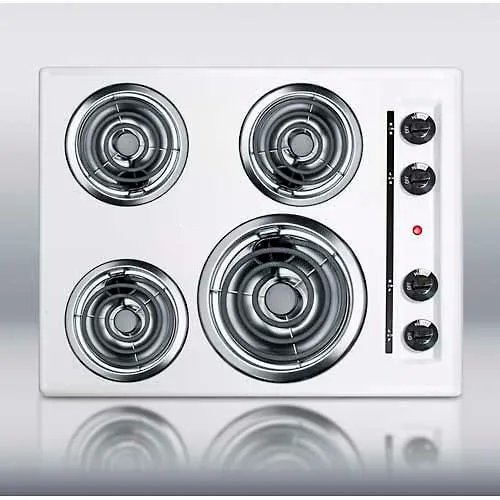 Summit-24"W 220V Electric Cooktop, White Porcelain Finish