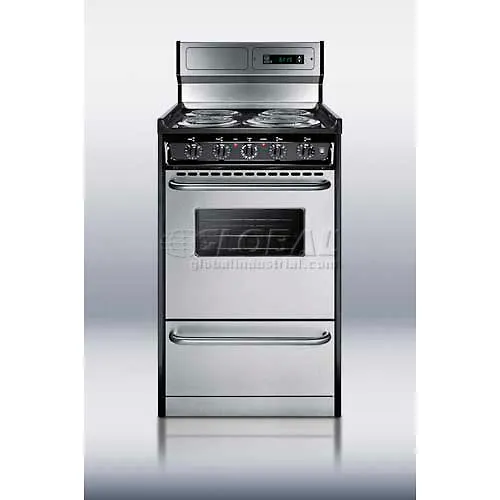 Summit-Deluxe 220V Electric Range, Slim 20"W, Stainless Steel Doors