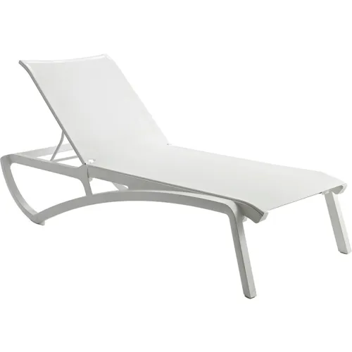 Grosfillex® Sunset Adj. Sling Chaise Lounge, White Sling On Glacier White Frame - Pkg Qty 12