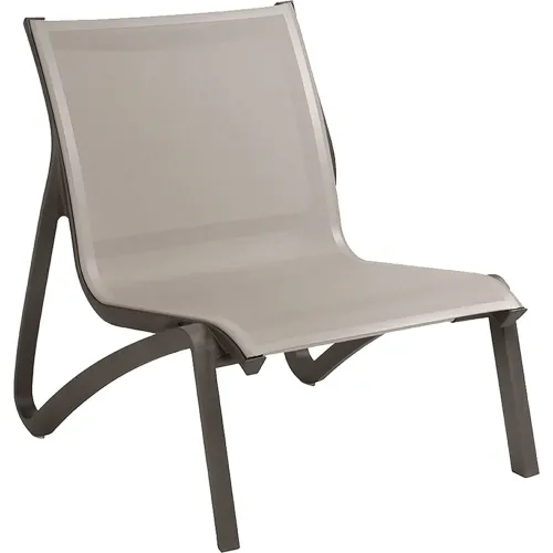 Grosfillex® Sunset Armless Lounge Chair, Solid Gray Sling On Volcanic Black Frame - Pkg Qty 4