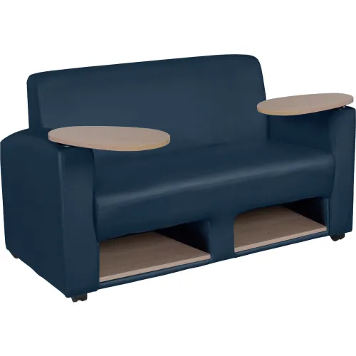 Regency Supernova Tablet Arm Loveseat with Storage, 56"W x 29"D x 33"H, Navy Blue/Noble Oak