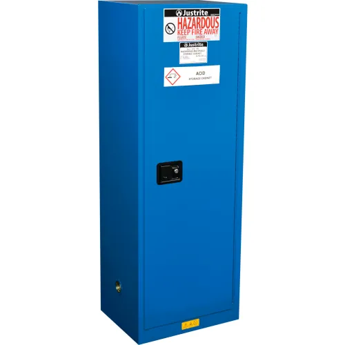 Justrite Sure-Grip EX Safety Cabinet, Self Close, 22 Gallon Cap., 23-1/4"W x 18"D x 65"H, Royal Blue