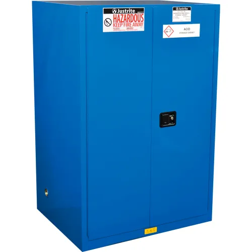 Justrite® Sure-Grip EX Safety Cabinet, Self Close, 90 Gal. Cap., 43"W x 34"D x 65"H, Royal Blue