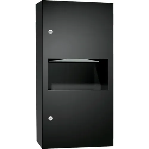 ASI® Surface Mounted Paper Towel Dispenser & Waste Receptacle, Stainless Steel, Black