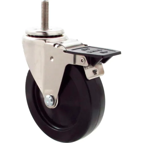 Durable Superior Casters Swivel Stem Caster - 5"Dia. Soft Rubber/Tread with Tech Lock, 1-1/2"H Stem