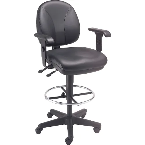 Interion® Leather Task Stool with Arms - 360° Footrest - Black