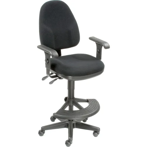 Interion® Work Stool With Arms - Fabric - 180° Footrest - Black