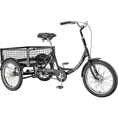 Husky Bicycles T-320 Industrial Tricycle w/ Rear Basket & Platform, 20" Wheels, 600 lb. Cap., Black