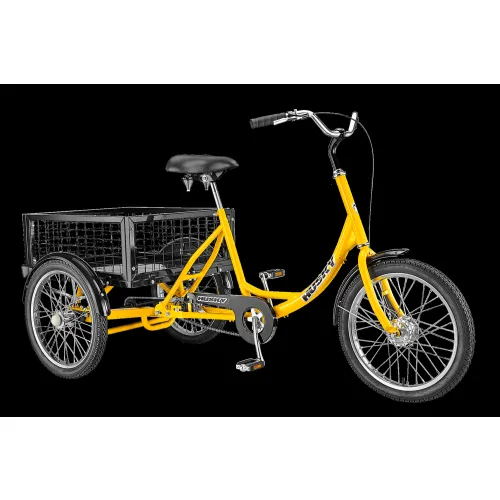 Husky Bicycles T-320 Industrial Tricycle w/ Rear Basket & Platform, 20" Wheels, 600 lb. Cap., Yellow