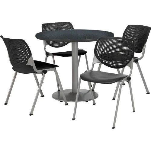 KFI 42" Round Dining Table & Chair Set, Graphite Table With Black Plastic Chairs