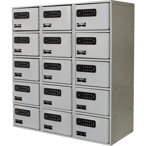 Hallowell® DigiTech 5-Tier 15 Door Phone Locker, 27"W x 12"D x 30-1/2"H, Gray, Assembled