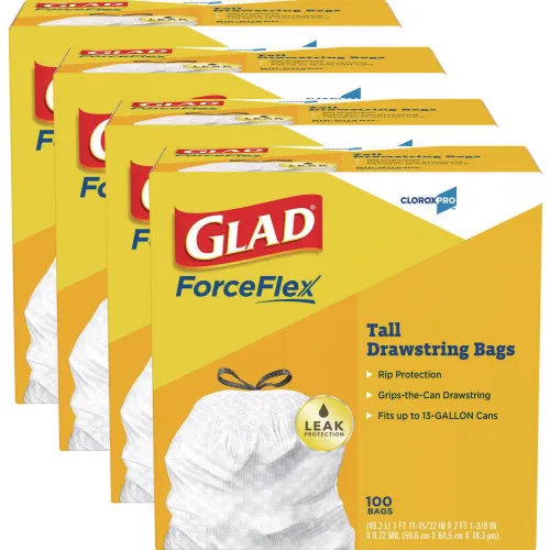 Glad® Tall Kitchen Drawstring Trash Bags, 13 Gal, 0.72 mil, 24" x 27.38", Gray, 400/Case