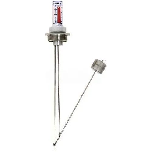 Tank Liquid Level Gauge, Stainless Steel Bushing, Rod & Float, 2" Fitting, 24" Depth