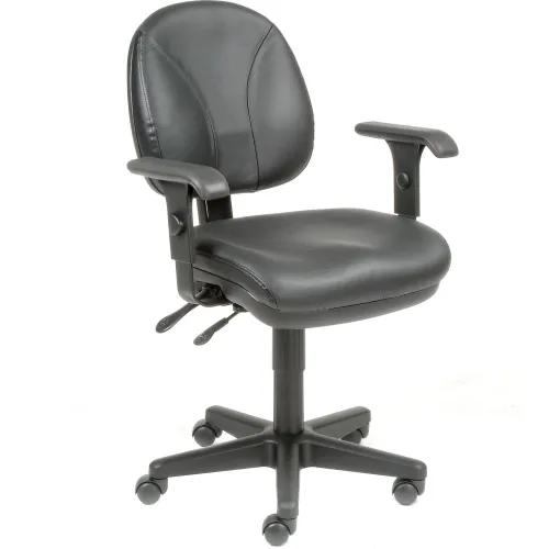 Interion® Task Chair With Arms With Mid Back & Adjustable Arms, Leather, Black