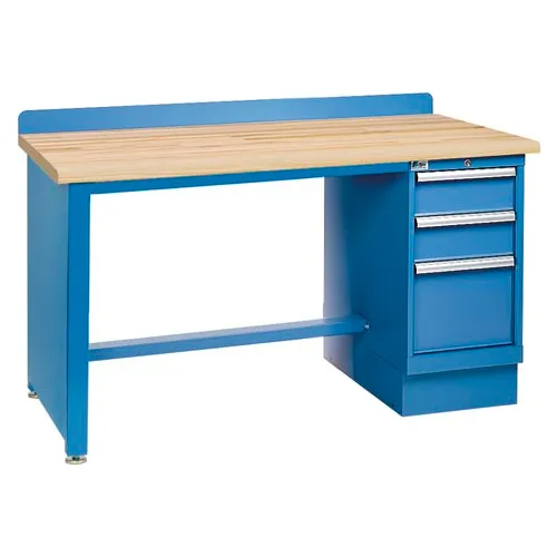 Lista® Technical Workbench w/ Leg, 3 Drawer Cabinet, Butcher Block Top, 60"W x 30"D, Blue