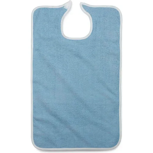 Medline Terry Adult Bib w/ Hook & Loop Strap, 21"L x 33"W, Blue, 12 Pack