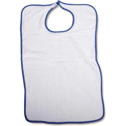 Medline Terry Adult Bib w/ Hook & Loop Strap, 33"L x 21"W, White, 12 Pack