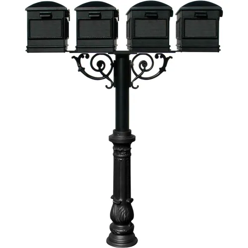 The Hanford Quad Post (With Support Brace), Ornate Base & Lewiston Mailbox