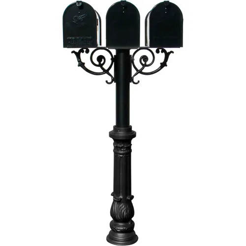 The Hanford Triple Post (With Support Brace), Ornate Base & E1 Economy Mailbox
