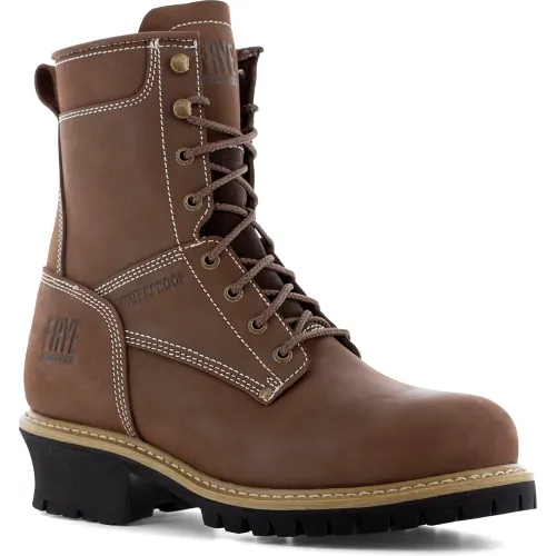 Frye Supply The Safety-Crafted Waterproof Logger Work Boots, Steel Toe, Size 9W, 8"H, Dark Brown