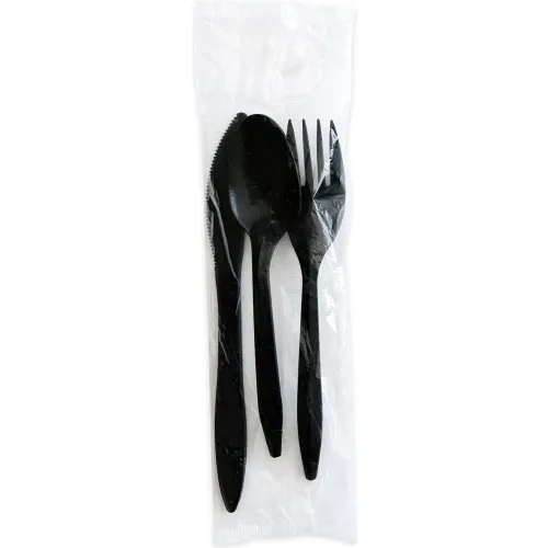 Boardwalk® Three-Piece Cutlery Kit, Fork/Knife/Teaspoon, Polystyrene, Black, 250/Carton