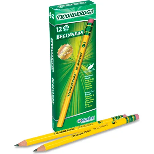 Dixon® Ticonderoga Beginners Woodcase Pencil With Eraser, Yellow Barrel, Dozen