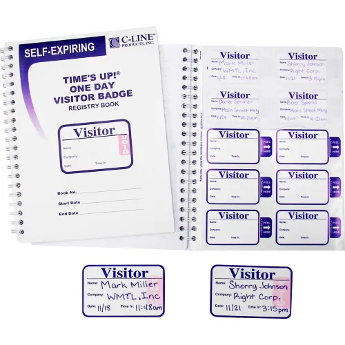 C-Line® Time's Up! Self-Expiring Visitor Badge with Registry Log, 3" x 2", 150/Pack