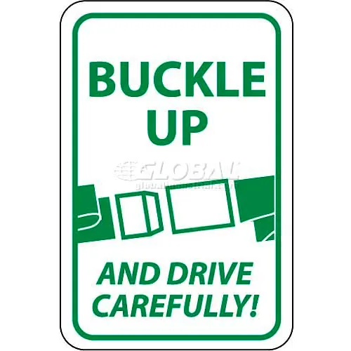 NMC TM111J Traffic Sign, Buckle Up And Drive Carefully, 24" X 18", White/Green