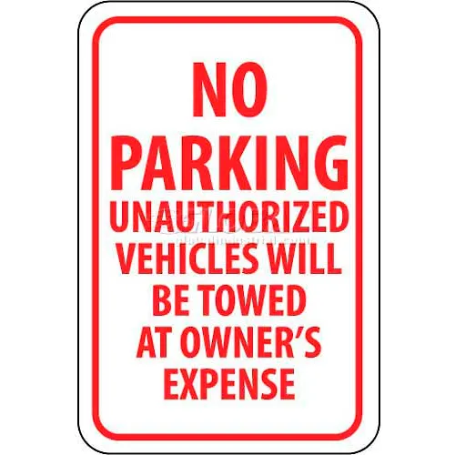 NMC TM12G Traffic Sign, No Parking Unauthorized Vehicles Will Be Towed, 18" X 12", White/Red