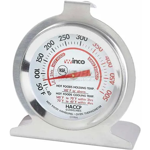 Winco TMT-OV2 Dial Oven Thermometer with Base and Hook - Pkg Qty 24