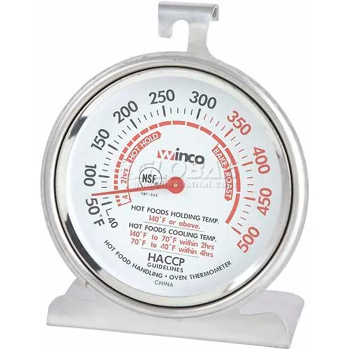 Winco TMT-OV3 Dial Oven Thermometer with Base and Hook - Pkg Qty 24