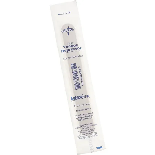 Medline MDS202075 Sterile Tongue Depressors, Wood, 6" Length, 100/Box