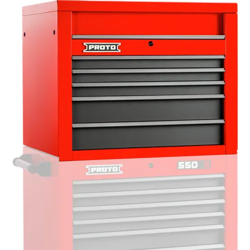 Proto® Top Chest W/ 5 Drawers, 34"W x 25-1/4"D x 27"H, Red & Gray