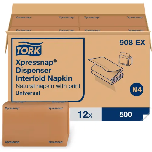 Tork® Xpressnap Interfold Dispenser Napkins, 1-Ply, 13"x 8-1/2", Natural, 500/Pk, 12 Pks/Carton