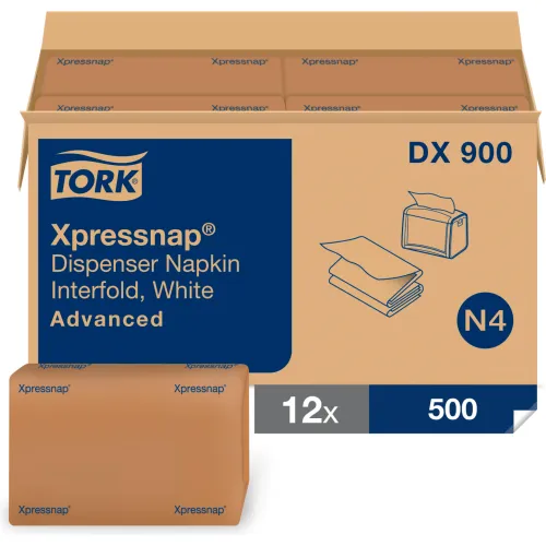 Tork® Xpressnap Interfold Dispenser Napkins, 1-Ply, Bag-Pack, 13'Wx8-1/2"D, White, 6000/Carton